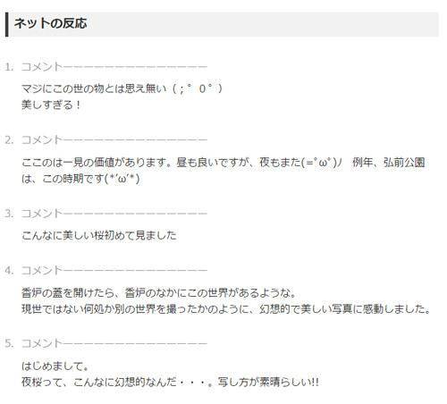 网友晒《飞翔的魔女》中弘前公园夜樱景引爆网络 发表于 2020-10-06 我们都知道在动漫《飞翔的魔女》中,有弘前公园的夜樱场景图。近日,日推上一位名为@NrNrNr7的推主在自己的推特上上传了一些去青森县的弘前公园踏青时的照片,在网络上掀起了一阵热潮。让我们先来看一下原作动漫中的夜樱景是什么样子的吧~ 接下来的照片都是推主在5月3日放在推特上的,被夜色浸染的弘前公园的樱花真的美得足以打破次元壁啊! 而这些照片也让日本的漫迷们十分激动!大家都在感慨着弘前公园夜樱的美丽,更有网友大赞推主的拍摄水平!下面是日网的截图。 性感美图 – 性感套图大本营