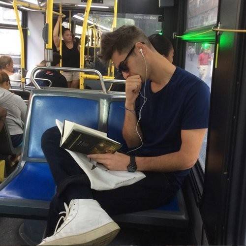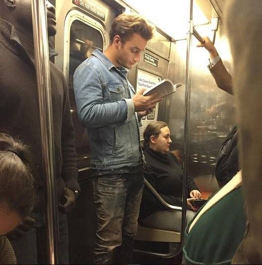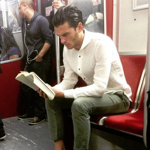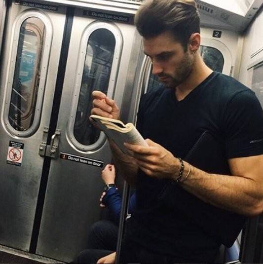 有鉴于现代人坐捷运/地铁时总是低头滑手机,变得越来越冷漠,像机器一样冰冷~从去年开始,IG上有一个hashtag默默流行了起来!它是#hotdudesreading(hot dudes reading)~翻成中文就是「猛男读书」(好直白XD)大家纷纷上传猛男在地铁上捧着一本书专注阅读的模样,是不是好忧郁好帅气好有气质呢?