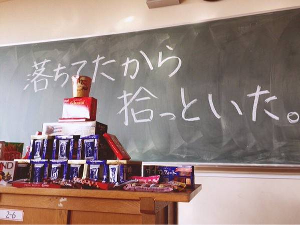 想必男孩们收到的时候,肯定冷汗直流吧……欸?情人节收到巧克力,不是应该很开心吗?而且还这幺丰盛,感觉这个班的男孩们很受女同学们喜爱啊。