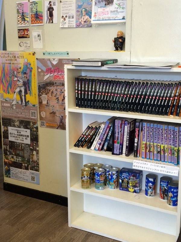 ▼而推门而入,便能看到整套的JOJO漫画与各种周边。