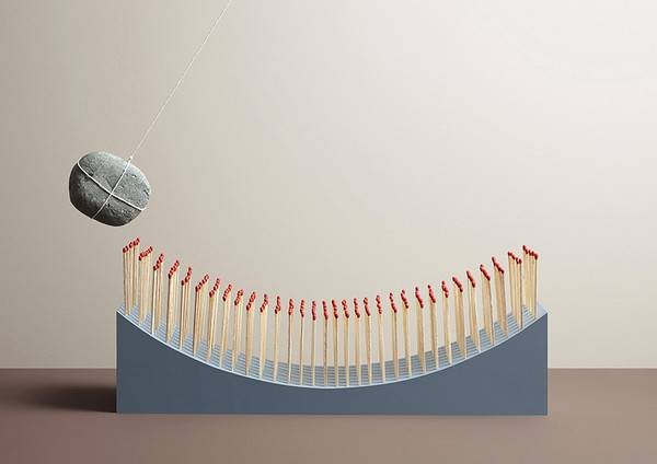 ▼石头晃过去的那一秒,所有火柴都会被点燃吗?