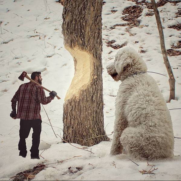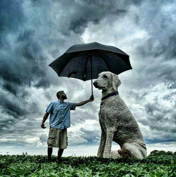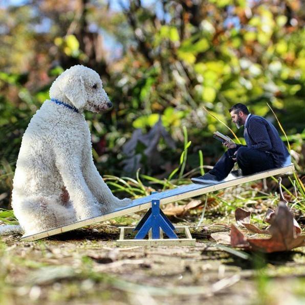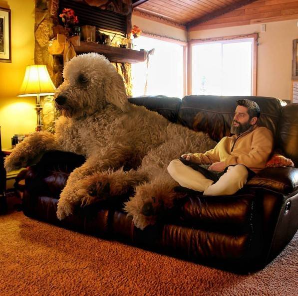 哈哈,当然是假的啦~自从有了Juji之后,克里斯福整个人都开朗起来了,他表示这只黄金贵宾不仅成为他最好的朋友,同时也带给他许多灵感,他纪录下自己与Juji生活的点滴,并且将照片后製,把Juji变成超大一只!