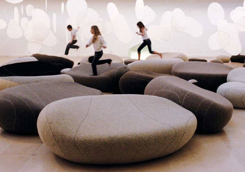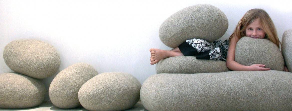 ▼他以100%的小羊毛打造出岩石枕头,而且有各种大小不一的尺寸,躺在里面就像真的躺在河床边的岩石上一样~
