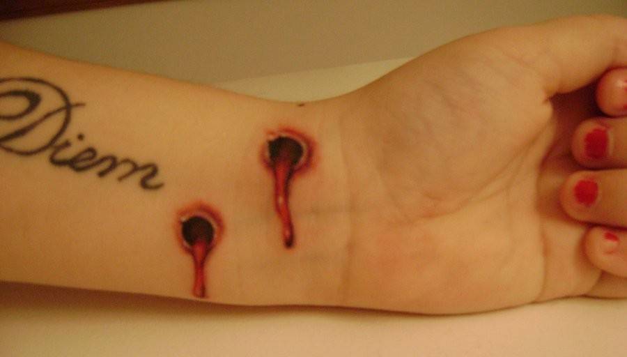 老娘发现不管是哪一款,几乎都是伤口外加汩汩留下来的血痕….恩,为什幺会想要刺这种图案在身上咧?是想要表达什幺?
