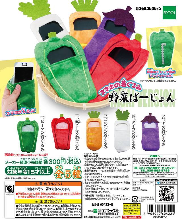 日本公司epoch推出了软绵绵的野菜手机袋(スマホの着ぐるみ 野菜ばーじょん),总共有5款野菜:红萝蔔、白萝蔔、茄子、青椒、红椒,拿来装手机也未免太幽默了吧!!好像刚去菜园摘完菜就抓着一根萝蔔上街喔XD