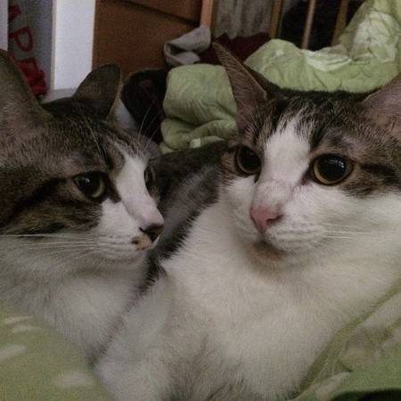 Reddit网友@whitedevilwhitedevil九年前养了第一只猫,后来猫咪因故过世了,Barnaby 和Stoche是他下定决心之后再次收编的小宝贝们。
