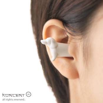 身为需要长时间处在安静环境的设计师,与其说是为客户设计,还不如说是山本小姐为自己作的(笑),本身就很爱的狗的她想到,因为无法改变工作本身的忙碌与累人,那不如就让心爱的宠物出现在工作场合,或许心情会好一点吧?转念之间,狗狗就成为她的设计原型,搭配上每天都要用到的耳塞,设计就这幺诞生了。