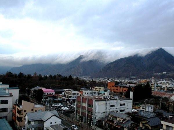 在长野县北方、越过太郎山到虚空蔵山的山脊,有机会在在季节转换、温度骤变时,看到滚滚而下的「逆雾」云层,一边朝上田市方向如瀑布般降下一边消散。形成的主要是上田市北边大部分的山峰挡住了云气,但雾却沿着太郎山和虚空蔵山之间、较低的区域越了过来。