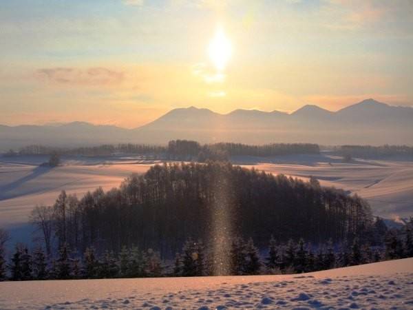 钻石星尘俗称冰晶,形成原理与雪相同,但晶体比雪小得多,因此冰晶会持续在空中飘浮闪耀。无风时,阳光会均匀反射在六角形的冰晶上,形成如梦似幻的美丽光柱。此景只能在北海道美瑛地区最冷的1~2月才有机会见到。