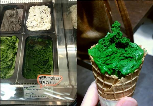 ▼不过竟然号称是世界最浓郁的抹茶,那到底有多浓郁呢?就有网友拍下照片直呼,这颜色超不自然!(*小百合个人认为应该是灯光关係,颜色应该看左边那张照片比较準。)
