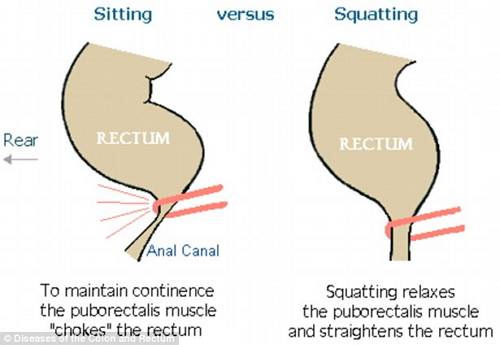 为:如果我们采取坐姿,在结肠的末端就会挤压出一个曲线,以致需要费力才能将便便排出,这无疑增长了排便的时间,也需要花更大的力气,所以容易导致痔疮和