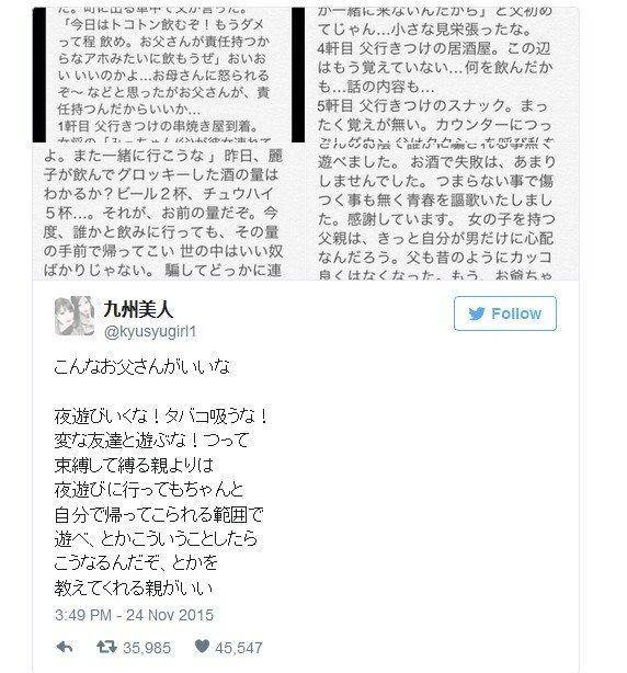 他的这条推特现在已经得到日本人民45000所个赞了,解释了他是如何向他的女儿展示怎样在不安全的世界里保证自己的安全。