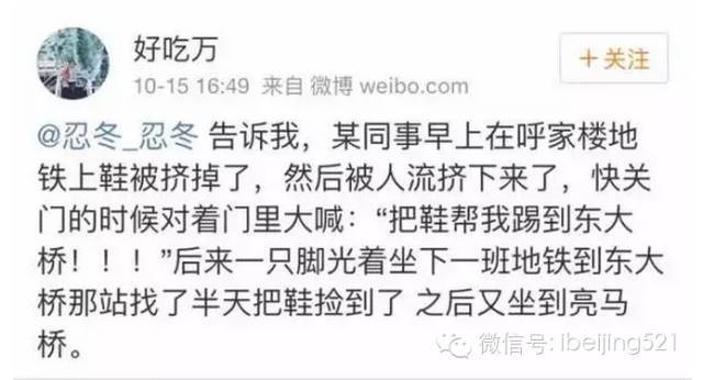 一石激起千层浪,紧接着广大北京网友含泪分享了自己地铁挤成狗的经历,果然,各有各的不幸……