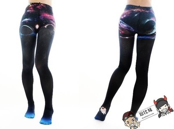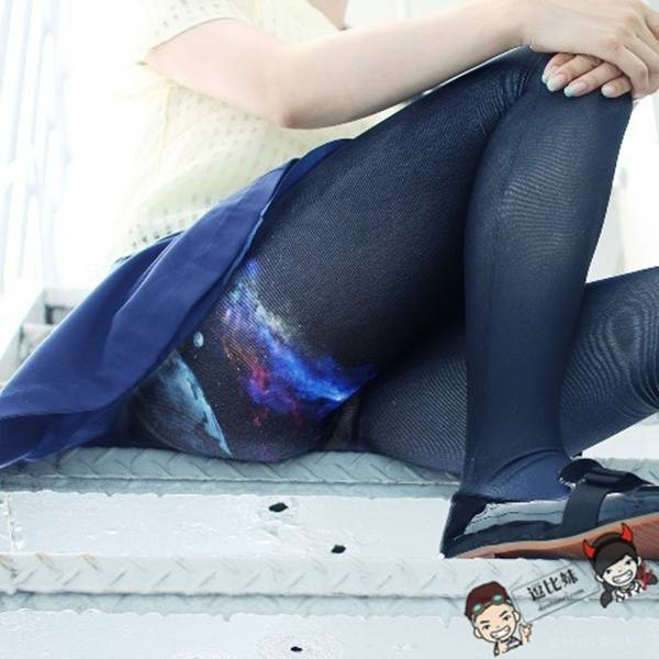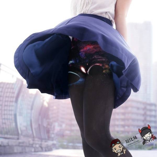 穿短裙的妹子如果不穿安全裤的话是很容易走光的,从上面这张图来看就是一件很普通的裙子加丝袜,但可是内有乾坤哦~这是日本设计出一款的「星空丝袜」(スカートの中の宇宙),裙子被风吹起的话里面可是很有看头的哦!