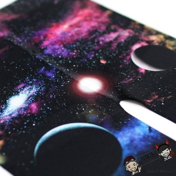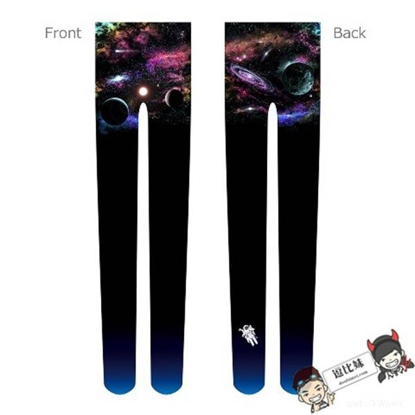 图中我们可以清楚地看到,黑色的裤袜从脚踝处延伸到的尽头是一片浩瀚星河,浩瀚无垠的苍穹下透露出谜样的空间