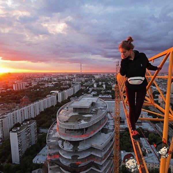 妮可劳今年23岁,是「战斗民族」俄罗斯人,她喜欢自拍,职业是街头特技摄影师,在全球拥有高知名度,她爆红的原因并不难猜,当然就是不断挑战超高难度自拍,像是没有安全措施站在高塔、高楼大厦上自拍,摔下去保证粉身碎骨先不说,光是克服强风,还有兼顾拍照品质和自身安全,就知道难度也多高,但妮可劳还是能一次又一次超越极限!