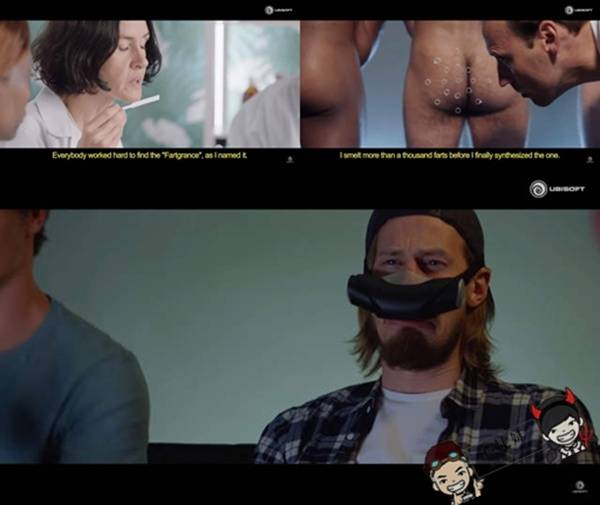 Ubisoft于德国科隆Gamescom展当中,发表了这款崭新的体感装置《Nosulus Rift》让玩家可以实际闻到游戏里斯坦等人所放的屁味…