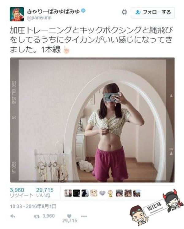 ▼她在Twitter上公开的这张腹肌照,说这是男人也会有人相信的吧!