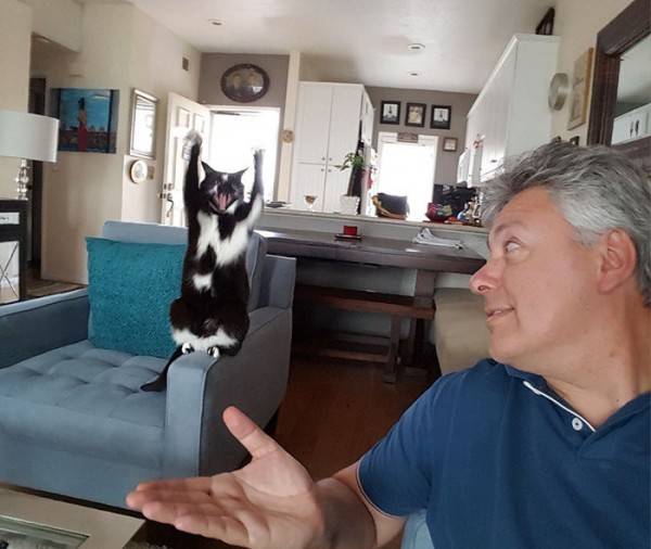 有养过猫的人都知道喵皇们平常是不太理人的,有种情况就是牠想撒娇才会理会你一下XD(非常傲娇)。虽然牠们有时会出现诡异举动,但都还在合理範围…不过在美国有只名叫基斯(Keys)的猫,不知从哪天开始总是举起双手,主人也是一脸疑惑……整只猫就像写了三个字:我投降@@!