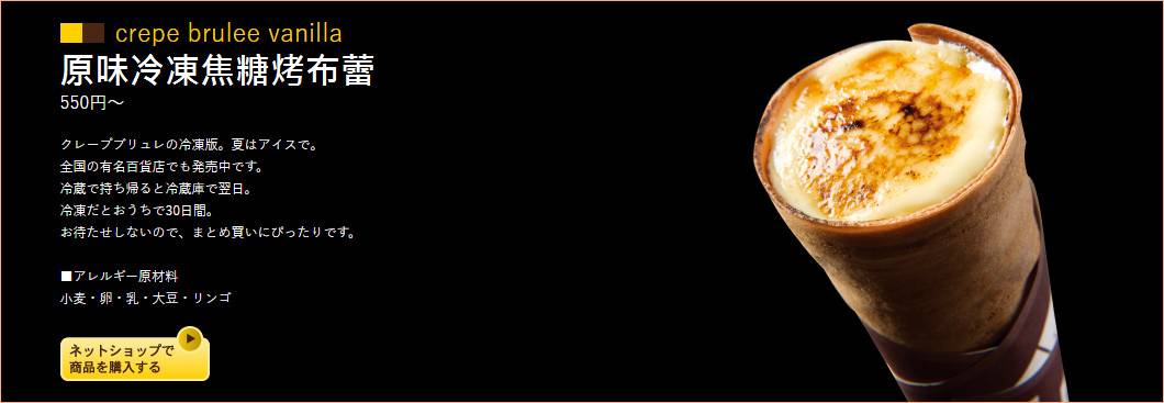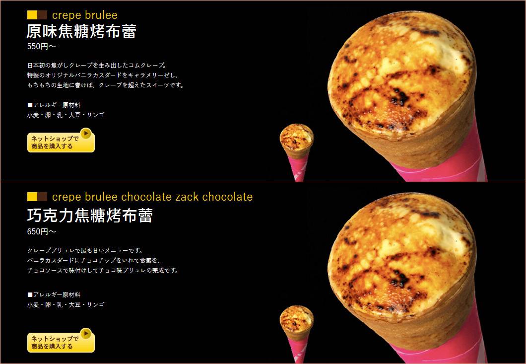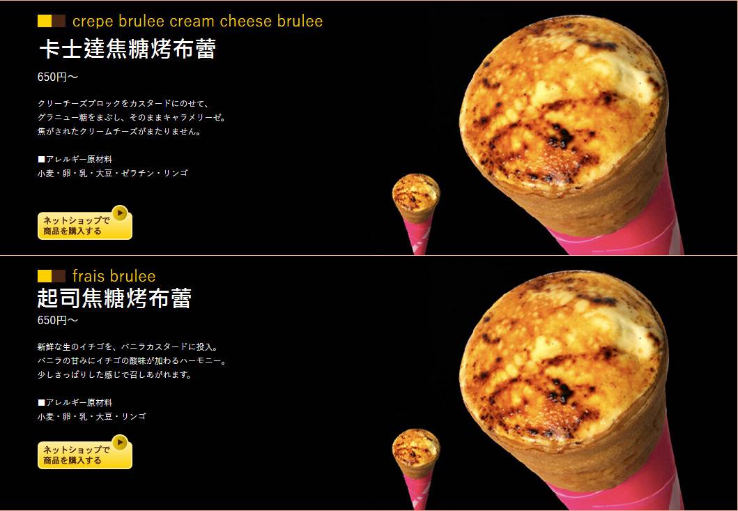 至今comcrepe店中所卖的烤布蕾可丽饼总共有4种口味: