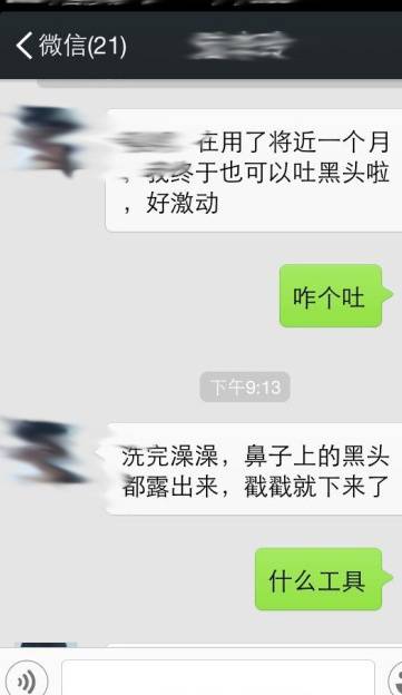 按照以油溶油的道理 皂皂洗脸时可融化带出毛孔中的黑头白头粉刺 鼓掌!!!! 做法是用温水洗脸后(记得要用温水)用皂拉丝 上皂液 洗两遍 按着毛孔的方向按摩 ( 脸颊方向往下按摩 鼻子往上按摩) 黑头白头的地方重点按摩 就可以溶出毛孔中的脏东西了 洗澡的时候用效果更好 做法是洗澡之前用皂液洗两次脸 之后开始洗澡 水蒸气有助于打开毛孔 洗完澡后就会发现有很多脂肪粒浮出来了 上指甲刮就可以刮下来 对于比较顽固的脂肪粒可以用粉刺针后面的圈圈圈出来