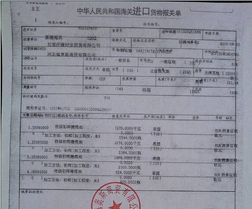 本店使用山茶油的认证书和橄榄油的海关进口报关单!!